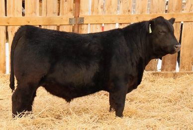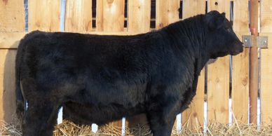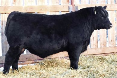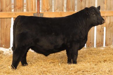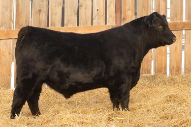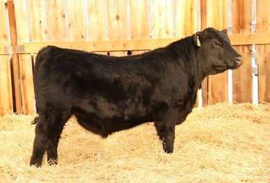 When I went shopping for semen, I gave Lee Wilson from Miller Wilson Angus a call. He hooked me up with his DMM Rolling Stone 10G semen. They have had a lot of his progeny hit the show ring and they are simply impressive animals. 10M did not disappoint. He has a very square stance with some hip, soft sided with a tonne of middle. Be sure to have a good look at this bull as he will make a great addition to any herd.