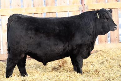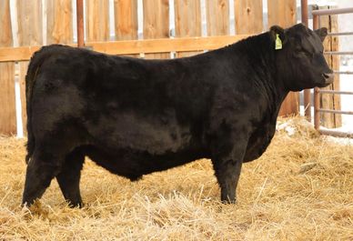 The matriarch of our herd, 61Y, has done it again! This tremendously thick, balanced bull is out of our first black angus cow at Lazy B. 61Y has produced several working bulls for satisfied customers throughout the Peace Country. If you have large cows and are worried about using a yearling, this is the guy for you. This large framed Admiral son stretches out in all directions. He will make a great cow bull for anyone.