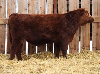 BINX 30L is out of our red herd sire, Rafter SJ Crush 18R who is a direct son out of the Northline Crush. Binx 30L is a dark cherry heifer bull that is very smooth and has a very balanced stride. He will cover ground with ease and get the job done.